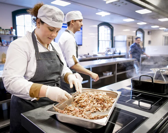 Kies je voor de 3-jarige BOL-opleiding, dan ben je het grootste deel van je opleiding op school te vinden. Je doet praktijkervaring op door te koken voor echte gasten in onze eigen keukens en tijdens je stages.