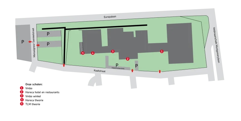 Ingang 2 is voor de gasten van het onderwijshotel en de restaurants. Deze praktijkvoorzieningen behoren tot de horecaschool in Eindhoven. Ook gasten die komen eten bij restaurant Le Début, dat wordt gerund door onze vmbo-leerlingen, komen hier binnen.