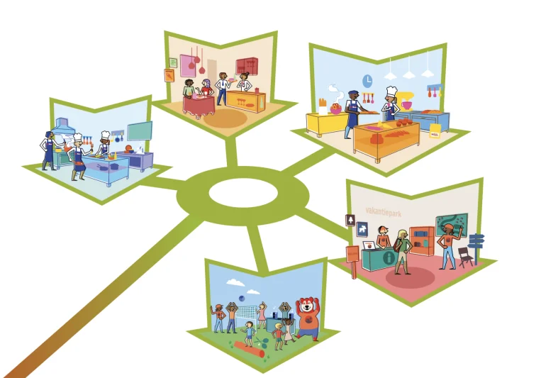 Op deze weg leer jij hoe je ervoor zorgt dat mensen een fijne tijd hebben wanneer ze vrij zijn of van huis zijn. Je leert koken als een echte chef-kok, je beleeft hoe het is om in een echt restaurant te werken en je leert de lekkerste broodjes en koekjes te bakken. Ook ontvang je mensen op een vakantiepark en zorg je ervoor dat de vakantiegangers plezier maken.