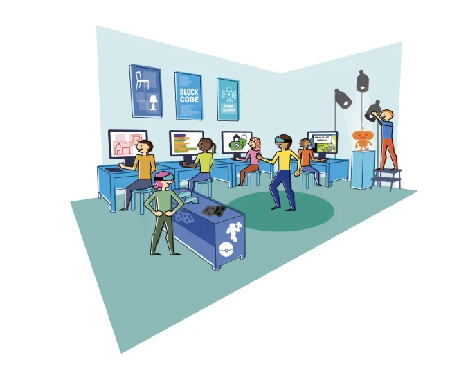 Op deze weg leer jij hoe je de computer kunt gebruiken om mooie nieuwe dingen te maken. Je gaat samen met je klasgenoten aan de slag met opdrachten van echte bedrijven. In deze opdrachten ga je van alles ontdekken. Je gebruikt bijvoorbeeld een VR-bril, maakt games en apps en ontdekt waar je de computer nog meer voor kunt gebruiken.